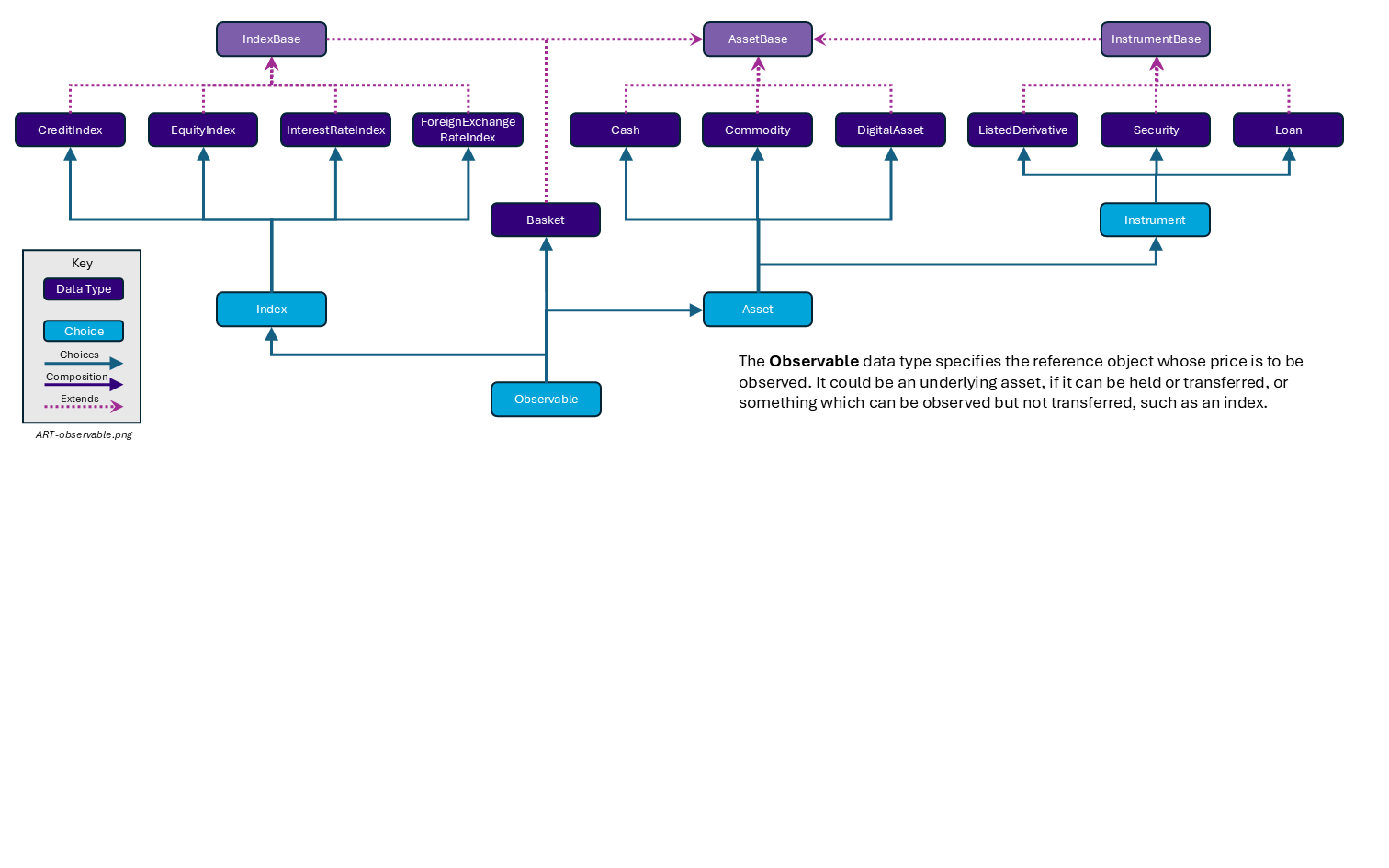 Each of the choice values are defined as data types within the model and each also extends a common base type